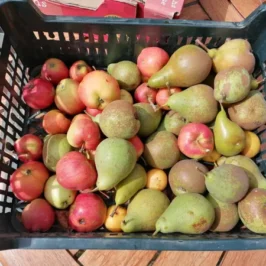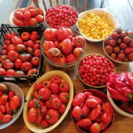 Further on in the garden, there is a vegetable garden, an orchard with small fruits, and more or less 50 fruit trees.