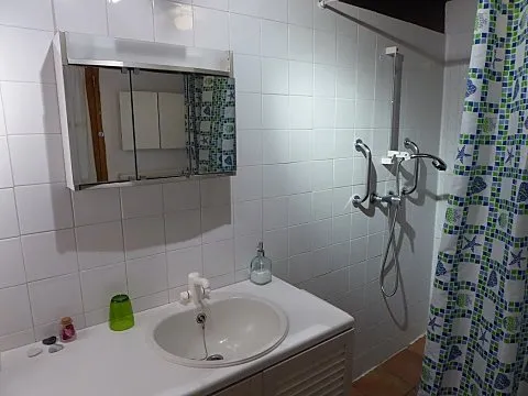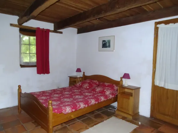 The double bedroom includes a queen size bed, bedside tables, a chest of drawers, a wardrobe, blankets and pillows. It has a direct access to the bathroom (shower and toilet).
