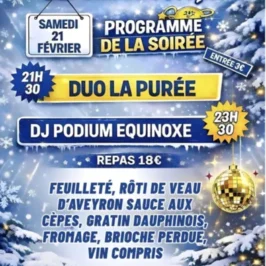 Une soirée festive pour égayer la saison hivernale : repas, concert, bal.