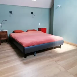 Vous entrez dans une grande pièce agréable de 50m2 avec salon et table à manger. Aussi dans cette pièce vous retrouvez une nouvelle cuisine et poêle à bois. L'escalier mène à 2 chambres, une salle de bains avec douche et baignoire et des toilettes séparées.Les chambres sont spacieuses et disposent de lits doubles de 220 cm chacun. Dans une pièce, il y a un canapé qui peut être utilisé comme un lit supplémentaire une fois déplié. Dans l'autre chambre, un lit simple peut être placé si vous le souhaitez. Les deux chambres sont très lumineuses grâce à deux fenêtres vélux (ouverture et obscurcissement par télécommande).